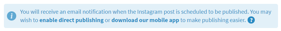 If the video is too short or too long for direct publishing, we will instead send a mobile or email notification, so you can publish the post manually - this will allow you to post the image or video, cropped to fit on Instagram.
